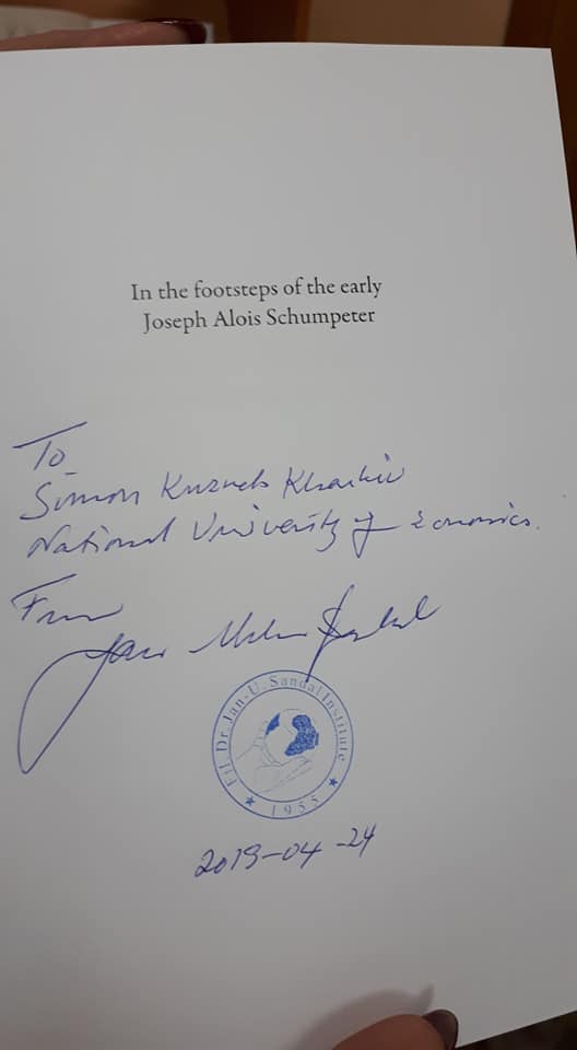 To read the book of Professor Jan-Urban Sandal, "In the Footsteps of the Early Joseph Alois Schumpeter," contact the library, the book is available in the library of new collections of the University.
